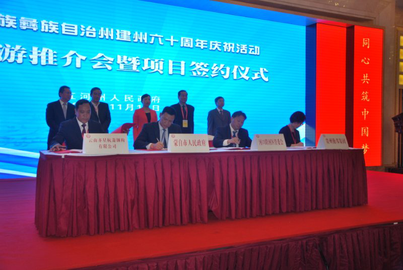 11月17日上午,紅河州建州六十周年慶祝活動(dòng)經(jīng)貿(mào)旅游推介會(huì)在開遠(yuǎn)舉行。推介會(huì)由紅河州副州長(zhǎng)周踴主持。會(huì)上,在云南省僑辦副主任袁光興,紅河州委...