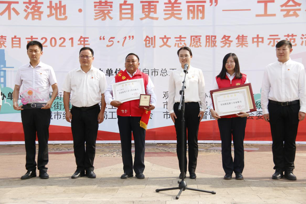 4月30日,蒙自市總工會(huì)在南湖廣場(chǎng)開展“煙頭不落地·蒙自更美麗”志愿服務(wù)集中示范活動(dòng)暨“全國(guó)模范職工小家”、“全國(guó)優(yōu)秀工會(huì)工作者”頒獎(jiǎng)儀式,...